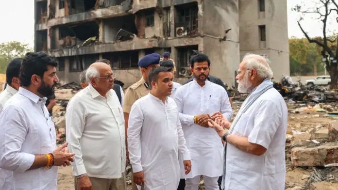 ಅಪಘಾತ ಸಂಭವಿಸಿದ ಬಳಿಕ ನಿರಂತರವಾಗಿ ಅಧಿಕಾರಿಗಳೊಂದಿಗೆ ಸಂಪರ್ಕದಲ್ಲಿದ್ದ ಪ್ರಧಾನಿ ಮೋದಿ ಅವರು, ಕೇಂದ್ರ ಗೃಹ ಸಚಿವ ಅಮಿತ್ ಶಾ ಮತ್ತು ಕೇಂದ್ರ ನಾಗರಿಕ ವಿಮಾನಯಾನ ಸಚಿವ ರಾಮ್ ಮೋಹನ್ ನಾಯ್ಡು ಅವರನ್ನು ತಕ್ಷಣ ಅಹಮದಾಬಾದ್ಗೆ ತೆರಳುವಂತೆ ಸೂಚನೆ ನೀಡಿದ್ದರು. ಇದಕ್ಕೂ ಮೊದಲು ಪ್ರಧಾನಿ ಮೋದಿ ಅವರು ಅಹಮದಾಬಾದ್ ಸಿವಿಲ್ ಆಸ್ಪತ್ರೆಗೆ ಭೇಟಿ ನೀಡಿ, ವಿಮಾನ ಡಿಕ್ಕಿ ಹೊಡೆದ ಪರಿಣಾಮ ಗಂಭೀರವಾಗಿ ಗಾಯಗೊಂಡಿರುವ ಹಾಸ್ಟೇಲ್ ವಿದ್ಯಾರ್ಥಿಗಳನ್ನು ಭೇಟಿ ಮಾಡಿ ಆರೋಗ್ಯ ವಿಚಾರಿಸಿದರು.