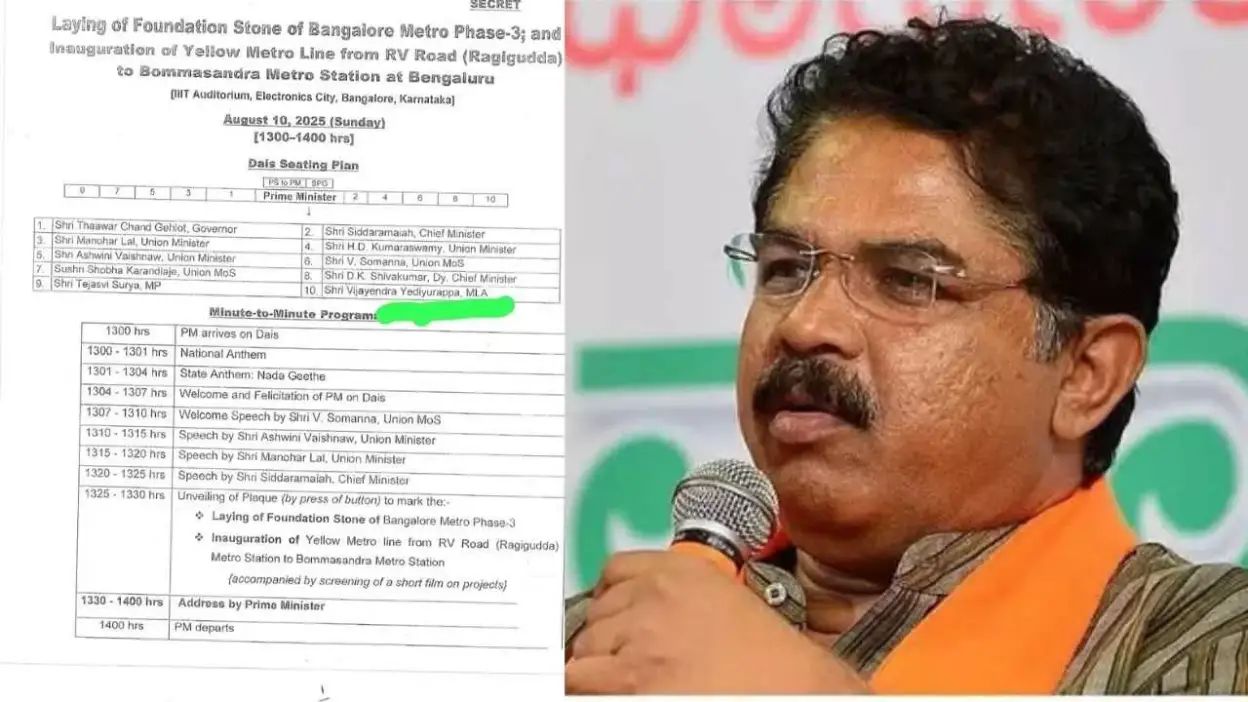 ನಾಳೆಯ ದಿನ ರಾಜಧಾನಿ ಬೆಂಗಳೂರಿನಲ್ಲಿ ನಡೆಯಲಿರುವ ಪ್ರಧಾನಿ ನರೇಂದ್ರ ಮೋದಿ ಅವರ ಅಧಿಕೃತ ಕಾರ್ಯಕ್ರಮಕ್ಕೆ ವಿರೋಧ ಪಕ್ಷದ ನಾಯಕ ಆರ್.ಅಶೋಕ್ ಅವರಿಗೆ ಆಹ್ವಾನ ನೀಡದಿರುವುದು ತೀವ್ರ ವಿವಾದಕ್ಕೆ ಕಾರಣವಾಗಿದೆ. ಶಿಷ್ಟಾಚಾರವನ್ನು ಉಲ್ಲಂಘಿಸಿ, ಬೆಂಗಳೂರಿನ ಶಾಸಕರೂ ಆಗಿರುವ ವಿಪಕ್ಷ ನಾಯಕನನ್ನೇ ಕಡೆಗಣಿಸಿ, ಶಿಕಾರಿಪುರದ ಶಾಸಕರಾದ ಬಿಜೆಪಿ ರಾಜ್ಯಾಧ್ಯಕ್ಷ ಬಿ.ವೈ.ವಿಜಯೇಂದ್ರ ಅವರಿಗೆ ಆಹ್ವಾನ ನೀಡಿರುವುದು, ಅಶೋಕ್ ಅವರ ತೀವ್ರ ಅಸಮಾಧಾನಕ್ಕೆ ಕಾರಣವಾಗಿದೆ ಎಂದು ತಿಳಿದು ಬಂದಿದೆ.