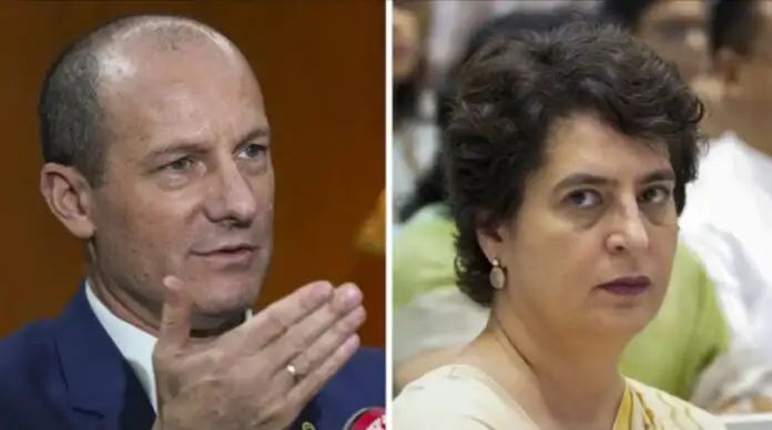 ಪ್ರಿಯಾಂಕಾ ವಾದ್ರಾ ಆರೋಪಕ್ಕೆ ಭಾರತದ ಇಸ್ರೇಲ್‌ನ ರಾಯಭಾರಿ ರುವೆನ್ ಅಜರ್ ಕೌಂಟರ್ ನೀಡಿದ್ದಾರೆ.