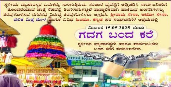 ಗದಗ:- ಉತ್ತರ ಕರ್ನಾಟಕದ ಪ್ರಸಿದ್ಧ ಲಿಂಗಾಯತ ಪೀಠವಾಗಿರುವ ಗದಗದ ತೋಂಟದಾರ್ಯ ಮಠದಲ್ಲಿ ರಥೋತ್ಸವದ ನಂತರ ನಡೆಯುವ ಎರಡು ತಿಂಗಳ ವ್ಯಾಪಾರದಲ್ಲಿ ಹೊರ ರಾಜ್ಯದ ಮುಸನ್ಮಾನರು ವ್ಯಾಪಾರ ಮಾಡುವ ಹಿನ್ನೆಲೆಯಲ್ಲಿ ಮೇ 15ರಂದು ಹಿಂದೂಪರ ಸಂಘಟನೆಗಳು ಗದಗ ಬಂದ್ಗೆ ಕರೆ ನೀಡಿದ್ದಾರೆ.