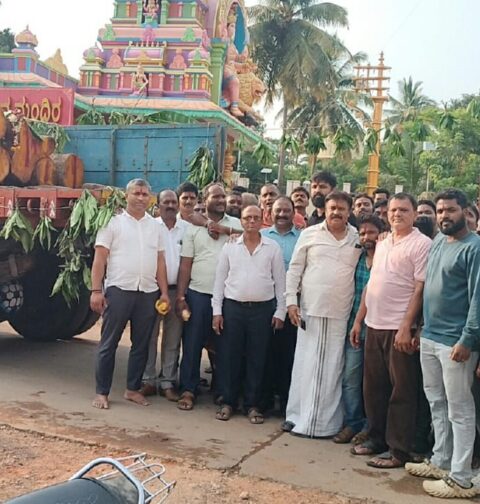 ಎನ್.ಆರ್.ಪುರ: ಕೋಟೆ ಮಾರಿಕಾಂಭ ದೇವಿ ವಿಗ್ರಹ ಕೆತ್ತನೆಯ ವೃಕ್ಷ ‘ಪುರ’ ಪ್ರವೇಶ