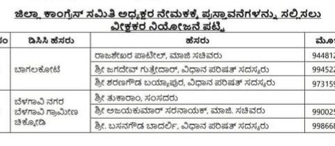 ಜಿಲ್ಲಾ ಕಾಂಗ್ರೆಸ್ ಸಮಿತಿಗಳಿಗೆ ನೂತನ ಅಧ್ಯಕ್ಷರ ನೇಮಕಾತಿಗೆ ವೀಕ್ಷಕರ ನೇಮಕ