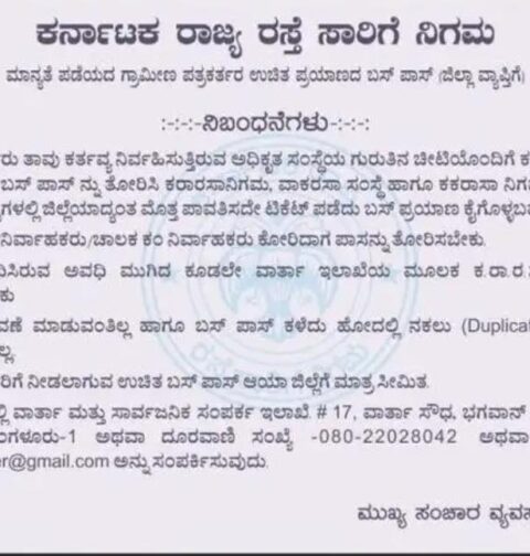 ಮಾನ್ಯತೆ ಪಡೆಯದ ಗ್ರಾಮೀಣ ಭಾಗದ ಪತ್ರಕರ್ತರಿಗೆ ಉಚಿತ ಬಸ್ ಪಾಸ್