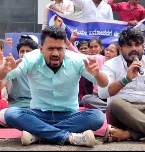 ಮಹಿಳಾ ವಿಶ್ವವಿದ್ಯಾಲಯದ ಮುಂಭಾಗ ದಲಿತ ವಿದ್ಯಾರ್ಥಿ ಪರಿಷತ್ ಪ್ರತಿಭಟನೆ